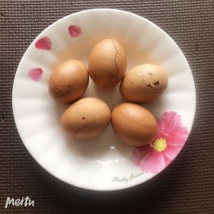 加入茶叶适量加生抽老抽,煮15分钟后关火,隔夜