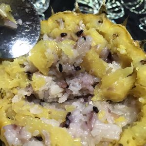 把菠萝肉,白米,紫米,杂粮放入菠萝壳