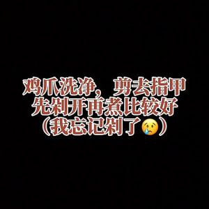鸡爪洗净,剪去指甲,剁开(我忘记剁了)。冷水下锅,加入盐、料酒、姜片、葱段。水沸腾后煮10分钟。