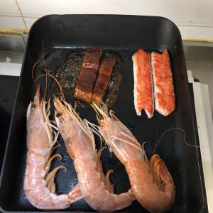 大虾提前解冻,料酒,咸盐,腌制一下。