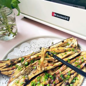 茄子一切为二,用刀在里面也划几刀,划好后最好用手撕下。我忘了哈哈