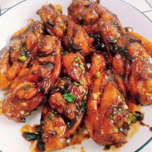 鸡翅打花刀,放入葱姜蒜,生抽,料酒腌制30分钟