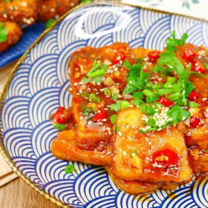 最后可以根据自己的口味撒上香葱和香菜即可,简单又超级下饭的香煎脆皮豆腐就做好啦~