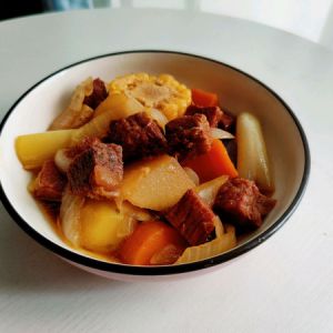 中火25分钟后,加入胡萝卜玉米和土豆。再炖15分钟,就可以出锅啦!