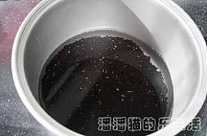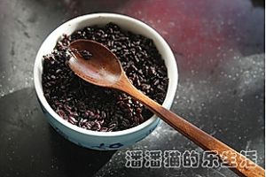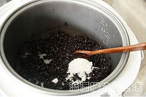 黑香米淘洗两边后,用清水浸泡四小时以上。浸泡一段时间后,放到电饭锅中焖熟,黑香米比较不好熟,要比平时焖饭放多一倍的水。