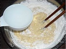 加入清水,用筷子搅拌均匀;