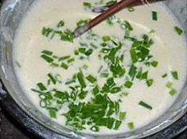 慢慢搅拌至无颗粒,加入切碎的葱花,搅拌均匀;