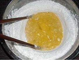 面粉中加入鸡蛋打散,加入2小勺盐;