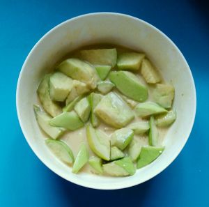 将茄子分批倒入面糊中,沾均匀。