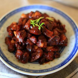 一直到听见锅里开始有油脂的滋滋声,表示水基本快干了,转小火,开盖,翻炒,这时要转小火是为了避免冰糖糊锅底,会有糊味。放一点点盐,口味清淡的,基本可以不用再放盐,然后沿边缘淋进去1汤匙陈醋,关火,翻炒均匀。这时醋的量取决于你喜欢吃多酸的味道,放少点,就是提香,基本吃不出来,放多点,就有酸味,自己调节。