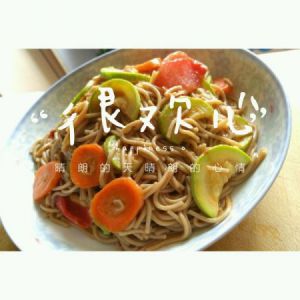 捞出泡好的面 过冷水 倒入菜中 开大火 翻炒 加入早先调好的酱汁 继续快速翻炒 拌匀 关火出锅……