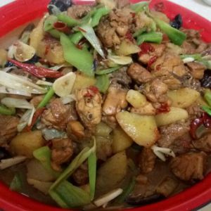 洋芋透了后放辣子,葱,蒜,翻炒至辣子熟