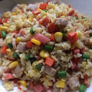 胡萝卜,火腿,豆角切丁,玉米掰颗