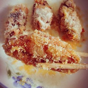 腌制3小时后,撒上面包粉。越多越好。