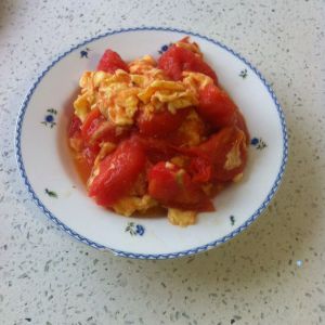 西红柿反炒一下,把先前的熟鸡蛋放在西红柿上面反炒一下起㶽。