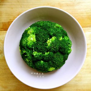 凉后的西兰花沥干水分,花朵朝下均匀的码在碗里。