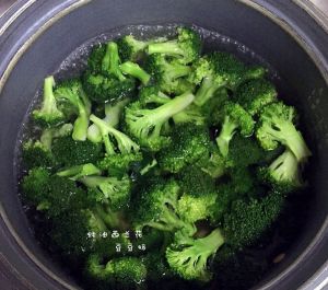 准备一盆冷开水把煮熟的西兰花浸泡晾凉