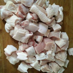 备好五花肉切块 把油放进锅里加热 放进姜八角