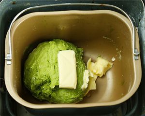 第一次搅拌之后加入黄油继续和面程序至出膜