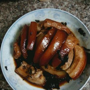 做好的肉上面盖个盘子,上蒸锅蒸2小时,起锅后把汤汁倒出来,把肉扣倒扣在盘子上再把汤汁淋在肉上,这样就可以开吃了