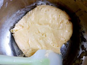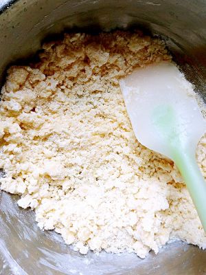 用刮刀翻拌成面团