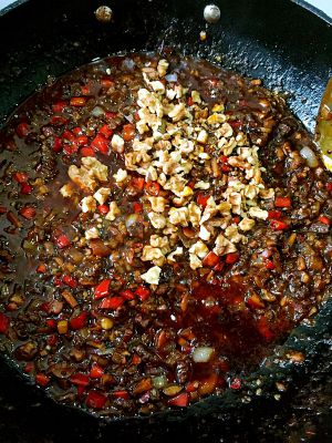 加入熟核桃,芝麻,番茄酱,麻油小火熬制哦