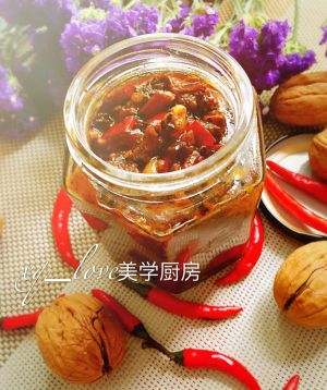 瓶子洗干净,水擦开。能装满一大瓶哦,满满的牛肉跟核桃哦,外面有钱都买不到这种味道哦