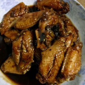 1鸡翅洗净用牙签扎,加两小勺料酒和小半勺盐腌制半小时左右(吃饭用的勺子)