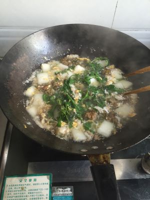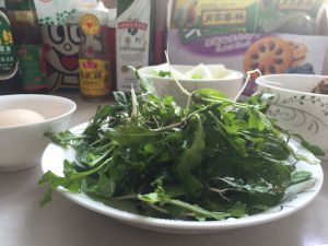 ➕鸡蛋迅速打散成花儿➕盐最后放入荠菜,荠菜很容易熟,放进去十几秒就要关火啦