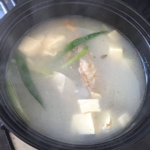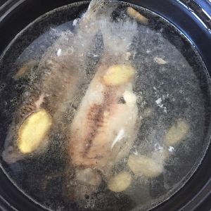 将鱼移至砂锅,添入凉水。放入葱姜蒜,料酒。