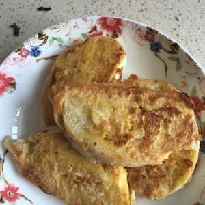 平底锅里放少许油,开始热锅,可以将馒头放进蛋液里两面蘸蛋液,就马上放进平底锅里小火煎,切记,一定不要在蛋液里泡太久,而且最好一片片蘸蛋液,蘸完马上入锅