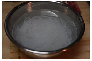 锅中放水及两片生姜烧开后放入泡软的粉丝;