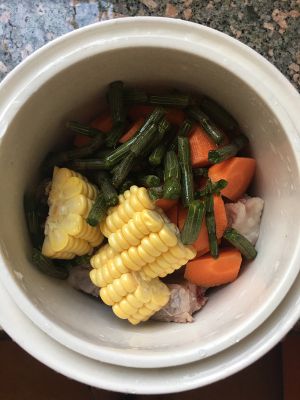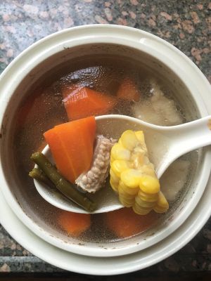 往排骨汤里加胡萝卜和玉米,可以减轻排骨汤的油腻感。将骨头放入冷水中加热,这样可以延长蛋白质的凝固时间,使骨头中的鲜味慢慢渗入汤中,使汤格外鲜美。
