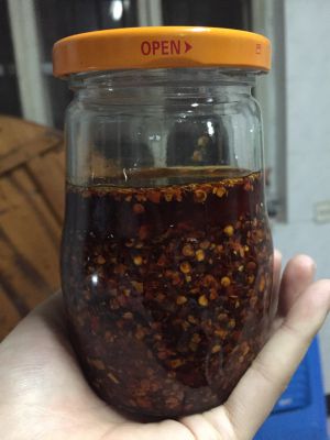 油一定要比辣椒碎多 没有油了 辣椒油就不好吃了 放着冷却后盖上盖子就OK了!可以不用放冰箱