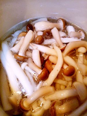 大火烧开,放入各类小菇熬汤,大约十分到二十分钟