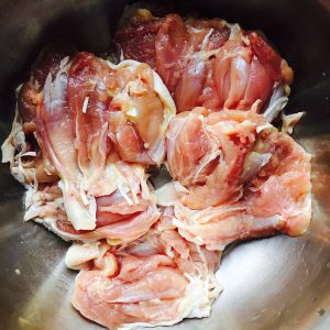 琵琶腿去骨,用刀背轻轻敲打把肉拍松散