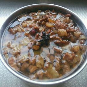 肉焖熟后,捡出葱、姜、八角、香叶不要。