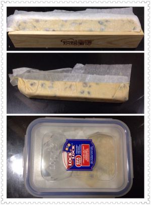 将油纸包着面团小心取出,放入冰箱冷冻一小时,直至冻硬定型。多的面团就用手整成方型或找个方型小盒子整形,也放入冰箱冷冻。