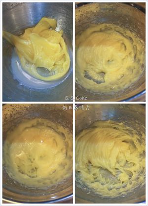 加1/3的食醋高速打稀释;再一勺一勺地加食油,每加一勺都要完全打发;