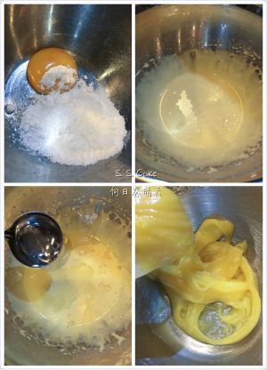 鸡蛋+糖粉打至发白;加一勺食油,高速打发融合,重复此步骤至加完1/3的食油(此时酱应该很浓稠);