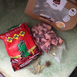 准备好材料,选用的牛腩,已经切好块了,提前冷藏解冻即可