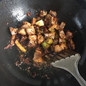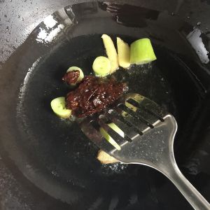 另起锅,放入适量油,烧热后放入葱姜爆香,再放入郫县豆瓣酱翻炒出香味