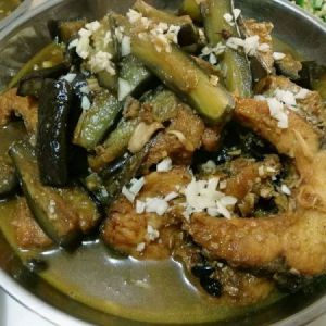 锅中留少许炸油,加入茴香花椒,葱姜蒜末爆香(葱皮干白,蒜末泛黄,油有葱蒜香)。倒入5中酱汁翻炒起泡加开水,放鱼块大火煮至汤汁变稠,加茄子焖熟,酌情加盐调味。出锅前加生蒜末提味。