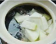 加入白萝卜块继续煲半小时,关火前5分钟加入枸杞,放盐调味即可,喝时撒些葱花或香菜味道也不错的。