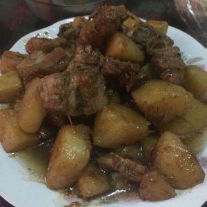 把煮好的肉和土豆一起炒煮10分钟 丹