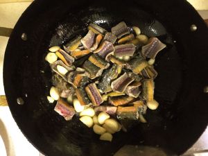 黄鳝洗净切段,撒上两小勺盐 用手捏揉将黄鳝外的粘层 揉去 再用水冲净沥干