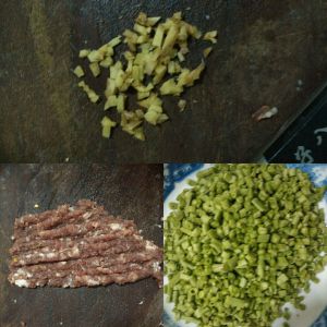 趁着醒面的空档开始炒烤肉豇豆,所有材料都切末
