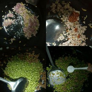 油温到5层的时候就下姜末,然后就下肉末,这样肉才不会粘锅,炒出来也嫩,肉变白后加入豆瓣酱,炒香后加入豇豆,炒好起锅。