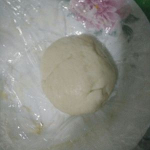 和面,和的感觉好了,然后弄成一个圆球,过一会不会变塌就差不多了,然后盖上保鲜膜放进冰箱醒面30分钟