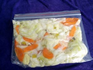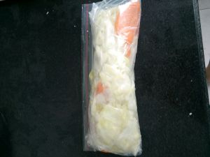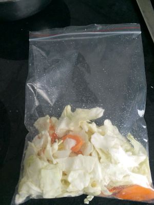 找一个自封袋,把拌好的菜装到袋子里,多的话可以分几次。